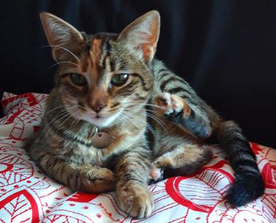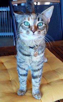 Our neighbours moved out of the country and abandoned their kitten (Sabaka) on their balcony with no food or water! She figured out how to jump onto our balcony and we have been taking care of her for a few days. She's a wonderful kitten, but we can't keep her as we're only here for 2 months.