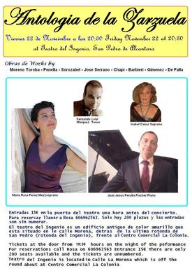 Following the success of their first concert, Gropo Vocal Lirico have announced their next concert “Excerpts from Zarzuela” to be held on 22nd. November 2013 at 20:30 hours in the San Pedro de Alcantara Teatro del Ingenio.