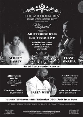 Tickets are still available for The Millionaires White Summer Party on July 30th but they are selling fast. You can buy your tickets online at www.millionairessummerparty.com or visit Manolo Santana Tennis Club from 2pm and 7pm Monday to Friday to purchase your tickets or collect those bought on-line.