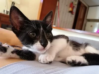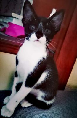 Giving away a two month old kitten that is accustomed to dogs and other cats. It is a female and very cuddly and loving with people. Used to the cat litter, hard food, using scratcher toys.