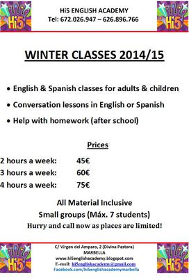 Do you want to learn Spanish or English? Hi5 English Academy is the place for you. We have classes for adults and for children to learn the fun way. Call us now to book a free trial class on 672026947 and ask for Jenny.