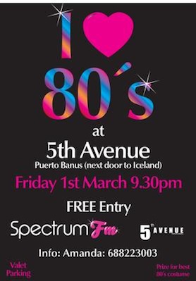Spectrum FM and I Love 80's have moved to a larger venue following a packed opening night. Join us in our new Chic Venue "5th Avenue" (next door to Iceland) in Puerto Banus.
