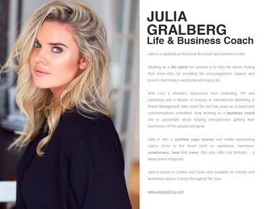 I’m Julia and I’m a qualified professional life coach and business coach. My passion is to help you find your true passion, trust your intuition and give you the encouragement, support and tools to follow your true path to living a successful and happy life.