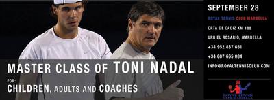 September 28, 2013 from 10.00 till 18.00 in the Royal Tennis Club Marbella will take place the master-class of Toni Nadal the uncle and coach of Rafa Nadal! The program - a master class for adults and children (of any age) and professional photo session.