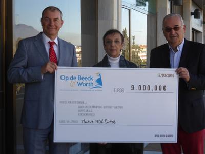 To signify the importance of social responsibility and to mark the team’s achievement, Director Danni Worth, presented a cheque on the 17th March 2016 at Op de Beeck & Worth’s office in Marbella, attended by employees and members of the press.