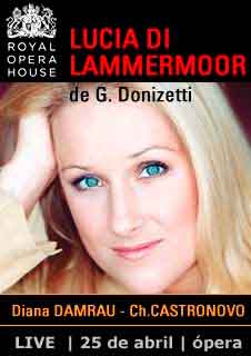 Lucia di Lammermoor tells the story of a long feud between two families in Scotland of the 17th century, which has just been having terrible consequences for two young lovers. Which containts what is undoubtedly one of the most poignant and fascinating opera scenes of history, and is considered one of the finest works of Donizetti. The opera has not been seen at the Royal Opera House for more than one decade, so this new production of Katie Mitchell represents an important milestone. The main role will be played by Diana Damrau, an expert in the coloratura repertoire, while the American tenor Charles Castronovo will assume the role of her secret lover, the fool and passionate Edgardo.