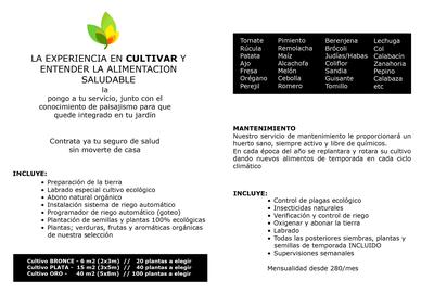 LA EXPERIENCIA EN CULTIVAR Y ENTENDER LA ALIMENTACION SALUDABLE LA PONGO A SU SERVICIO, JUNTO CON EL CONOCIMIENTO DE PAISAJISMO PARA QUE QUEDE INTEGRADO EN SU JARDIN.