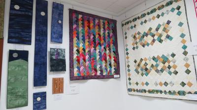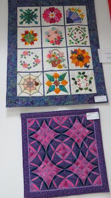 The group undertook individual projects to produce a mystery quilt. Every month instructions were sent out for the next part of the patchwork to be made. The finished article was not known by anyone except the co-ordinator. Each month the next section was made until the final part was distributed which showed the completed design. It was a fun project to do and an example is displayed at the exhibition.