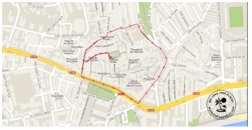 МАРШРУТ ПРОЦЕССИИ: Plaza Santo Sepulco, C/Trinidad, Plaza de la Iglesia, C/ Carmen, C/ Ortiz de Molinillo, C/ Virgen de los Dolores, C/ Remedios, Plaza Puente Ronda, C/ Ancha, Plaza del Santo Cristo, C/ San Francisco, C/ Salvador Rueda, Avda. Juan Alameda, C/ Arte, Plaza Puente Málaga, Avda. Nabeul, C/ Marques de Nájera, Plaza Practicante Manuel Cantos, C/ Tetuán, C/ Enrique del Castillo, Avda. Ramón y Cajal, C/ Huerta Chica, Plaza de la Victoria, C/ Estación, Plaza de los Naranjos, Plaza General Chinchilla, C/ Carmen, Plaza de la Iglesia,(Estación de Penitencia) C/ Trinidad, Plaza Santo Sepulcro y encierro.