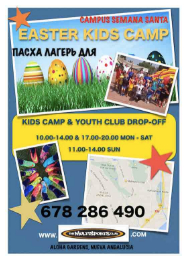 Клуб Мультиспорт и Экологическая Игровая Зонапредлагает спортивные занятия как для детей, так и для взрослых. Мы расположены в Aloha Gardens в Нуэва Андалусия. Они так же предлагают очень популярные детские лагеря, которые проходят во время выходных и школьных праздников в течении всего года. Это просто замечательное решение, если Вам нужна гибкая программа потому, что Вы можете выбрать на сколько занять своего ребёнка, на один час, на день или неделю – так как Вам удобно.