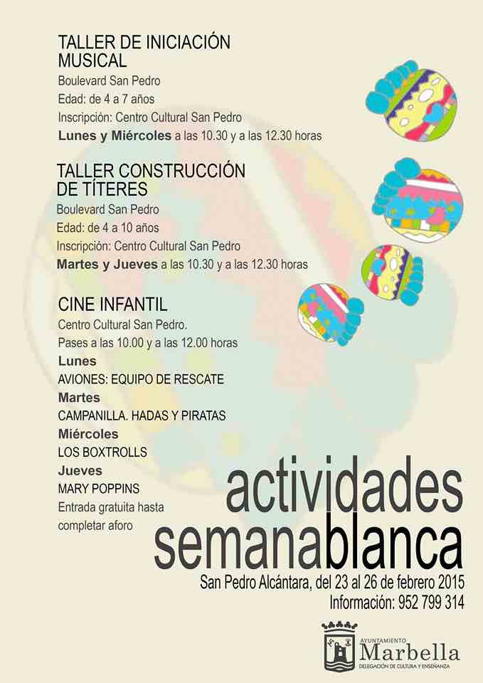 Semana Blanca in Marbella is week of school holidays for the kids in Malaga province. It is chosen by the autonomous community of Malaga as the week of holidays to to compensate for the local ferias (holidays) that occur during the summer break. Semana Blanca in Marbella is essentially a week chosen by the government to make up for other holidays which were missed due overlap with local festivals. It's great to live somewhere where they make sure you don't maximise your holiday time!