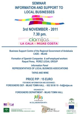 In order to provide information to foreign residents on the rules and regulations that govern the process of opening a business in Spain or becoming self-employed, Perez Legal Group is participating in a seminar on Wednesday 3rd November at Ciomijas, La Cala de Mijas. Entitled, “Information and Support to Local Businesses” the seminar will offer useful advice to expats.