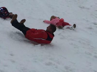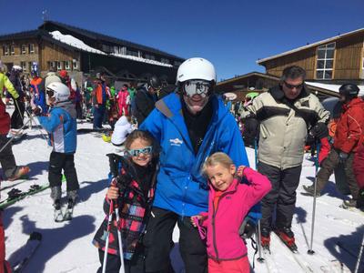 Day Three another perfect day, bright blue sky, cold a.m, a little too warm afternoon but that's Spring skiing anywhere, we skied, skied a bit more , had a long lunch and apres ski was at various bars in the square where lots of the kids all play together ! Dad then post a beer or three, wanted to go sledging, obviously all ended in tears with snow in places that you never knew existed but such fun !