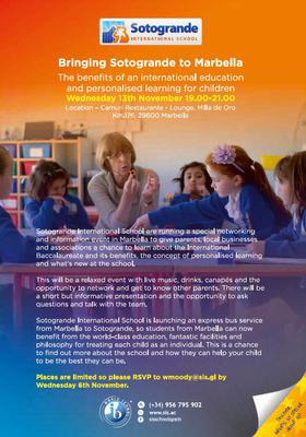 To mark the launch of this express bus service and the opening of their new boarding house SIS are running a special networking and information event at Camuri in Marbella on 13th November 2013. This will be a relaxed event with live music, drinks, canapés and the opportunity to network and get to know other parents. There will be a short but informative presentation about the International Baccalaureate and its benefits, the concept of personalised learning and how it is applied at SIS, what’s new at the school and the opportunity to ask questions and talk with the team.