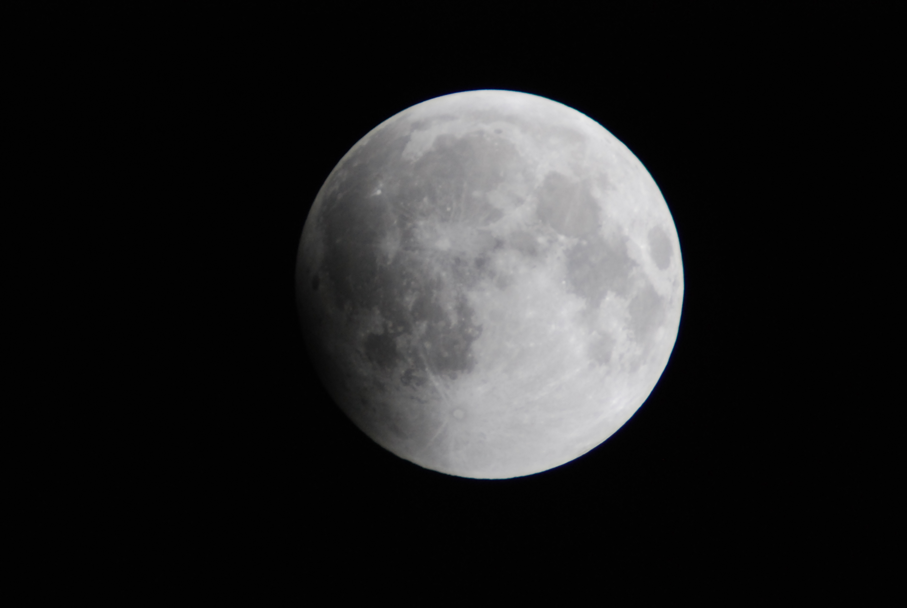 During the partial phase, the sun, Earth and moon are not quite perfectly aligned, and Earth’s shadow appears to take a bite out of the moon