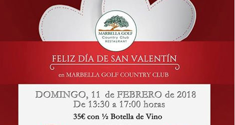 Marbella Golf Club Valentine's Dinner February 11, 2018. Live music, and three course meal. Reservations recommended.
